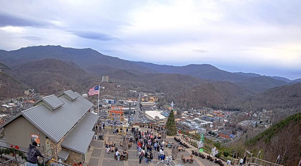 A: This cam is all about the panoramic overlook—you get a sweeping view above town with the Smokies in the background from a well-known scenic spot at Gatlinburg SkyPark.